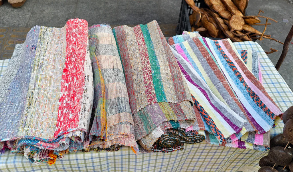 Every Suepla piece is made by hand. No machines, no assembly lines. Our weavers use traditional looms passed down through generations, strips of fabric they tear themselves, and the quiet hours between their daily lives.